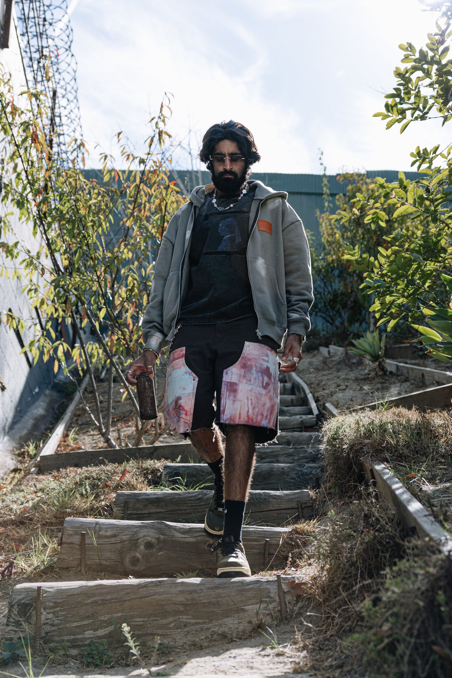 Each print or series of paintings on our pieces contain subtle details that make them special in their own way. I’ve always been fascinated with the phrase, “perfecting the imperfect,” which, in my mind, plays on an idea that most artists and designers hate. The idea that finished production and style need to be perfected. I believe that embracing mistakes and the aging process makes for a more unique style and way of living. I want to create an aesthetic for my brand where each garment, even though it might have the same concept and idea, is